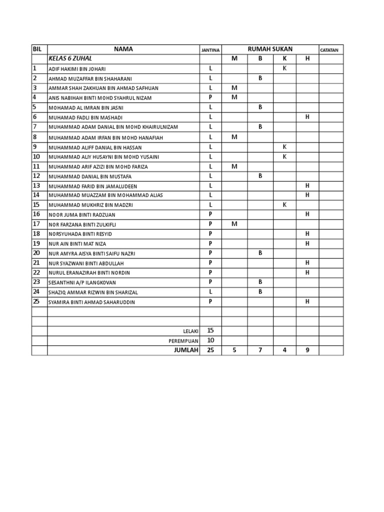 Nama Murid Rumah Sukan Skp 2018 Senarai Nama Acara Sukaneka Pdf